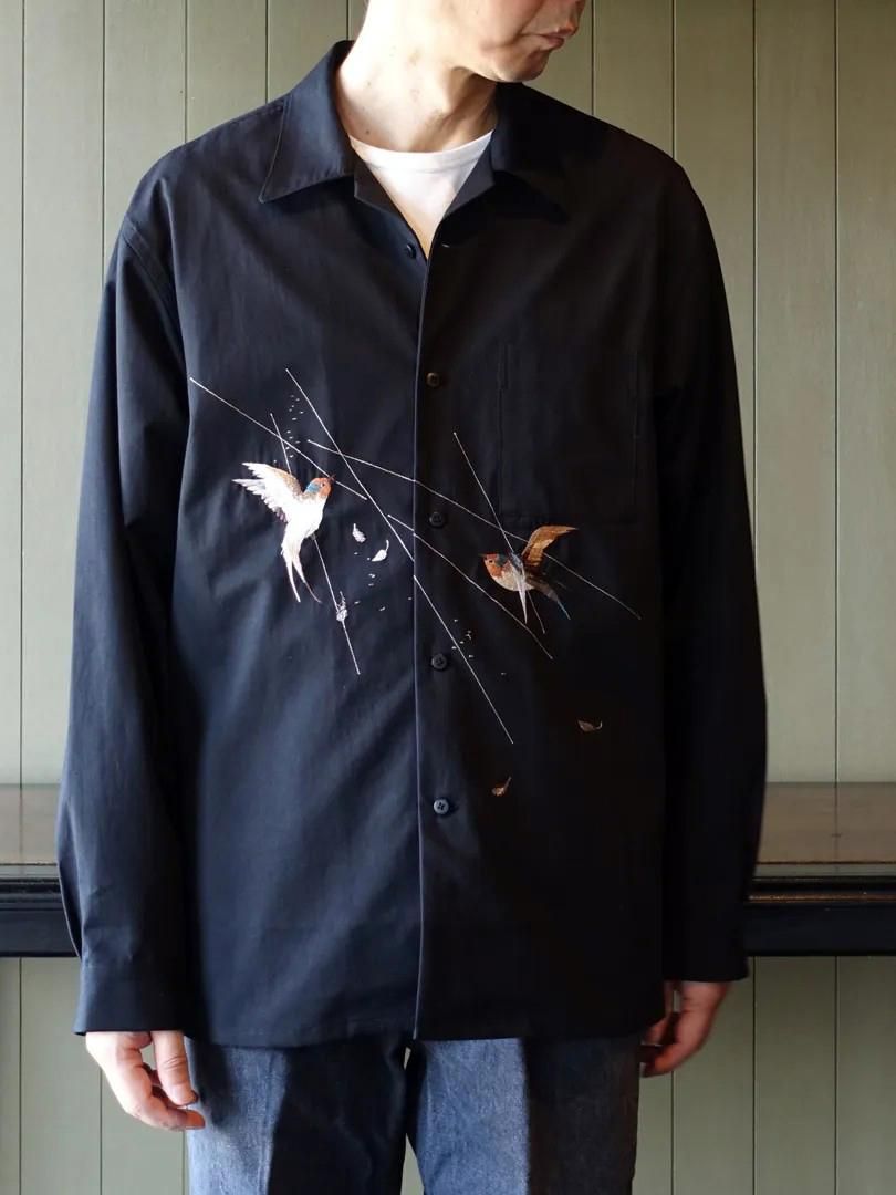 アーカイブピースで見かけるスカシャツ刺繍のクオリティ、世界観とは一線を画し、糸の太さに色数、グラデーション、陰影の付け方など限界まで設計したエレガントな表情が目を引きます。
