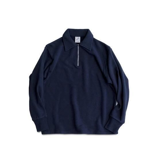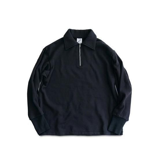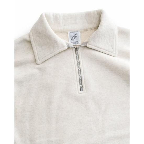 ヴィンテージのハーフジップスウェットをベースに、ロンTとして再構築した一着。スウェットの無骨さとロンTの軽快さを兼ね備え、新しいバランス感を楽しめます。軽やかな裏毛生地は柔らかく肌触りも抜群で、長いシーズン快適に着用可能。アルミジッパーがヴィンテージらしい表情を引き立て、一枚でもインナーでも活躍する汎用性の高いアイテムです。