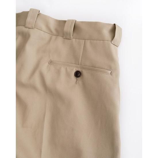 25AWの「FAT TROUSERS」から生地をアップデート。 新たに採用した綿ポリエステル生地は、綿100%では表現できない豊かな表情と、ポリエステル特有の機能性を兼ね備えています。汗ばむ季節でもべたつかず、さらりと快適な穿き心地。上品な質感でありながら洗い込むほどにヴィンテージのような風合いが増し、日常に自然と馴染む一本に仕上がりました。