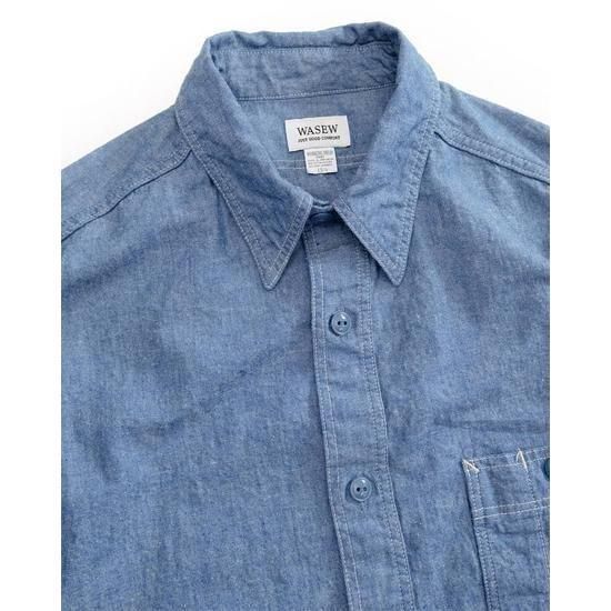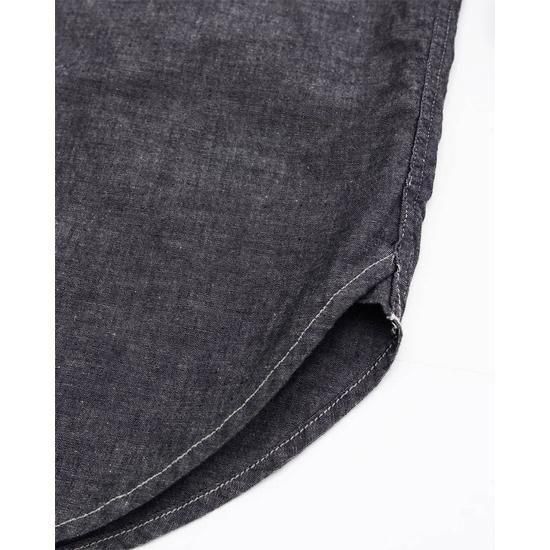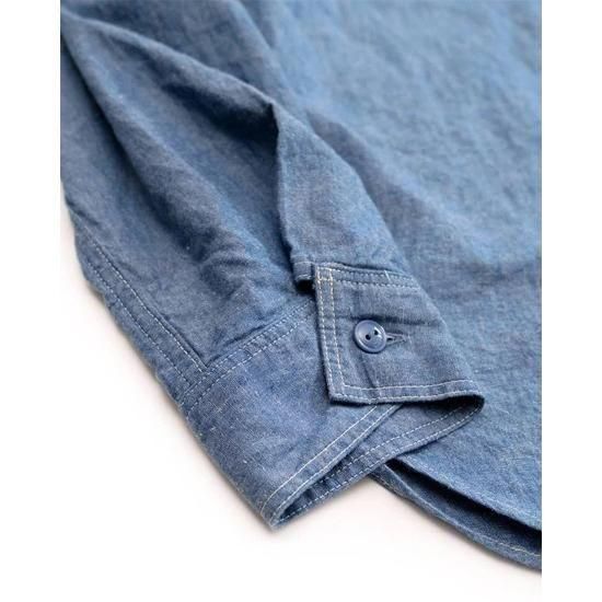 個性派ヴィンテージシャツとして知られる「BIG YANK」の“ガチャポケ”をサンプリング。特徴的なデザインを活かしつつ、余分を削ぎ落とし、日常に馴染むバランスへと再構築しました。コットンリネンのシャンブレー生地は清涼感があり、真夏でも快適。ホワイトステッチが爽やかさを引き立て、ワークの無骨さと日常の軽やかさを両立した一着です。