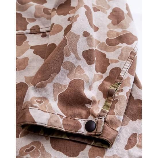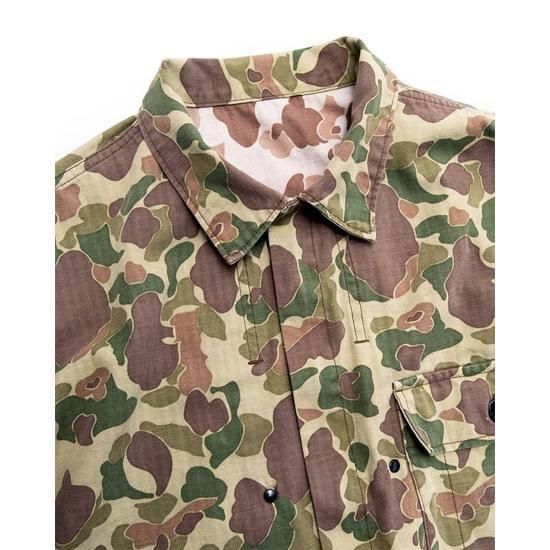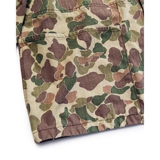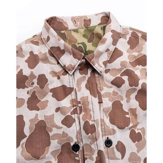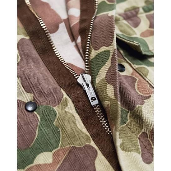 1944年に米海兵隊で採用された名作「P-44」をベースに、 その伝統的なデザインを分解・再構築。リバーシブル仕様に仕立て、日常に馴染む現代的な一着へとアップデートしました。着古したような加工を施すことで、ネップのかすれやプリントの風合いにリアルなヴィンテージ感を表現しています。