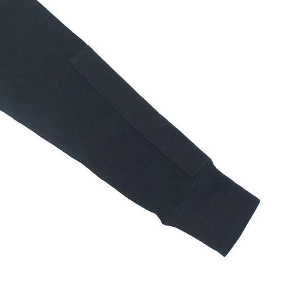 伸縮性の大きいハニカムサーマル生地(特に横側)に、キックバックの強いスパンフライスを組み合わせ、タフで型崩れしにくく長らく愛用できるでしょう。