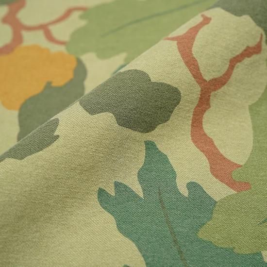 大きい雲の様な斑点模様と、そこに重ねられた小さな枝葉のような模様が施されたユニークな迷彩パターンになります。
