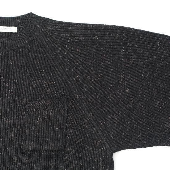 メインのマテリアルにはストレートウールとリネンケンピをブレンドさせ、上質な編み地の中にに、粗野な雰囲気を持つケンピヤーンが主張し奥行きのある目面に仕上がっています。
