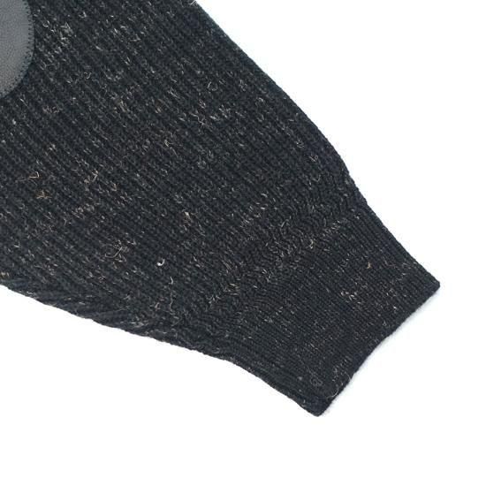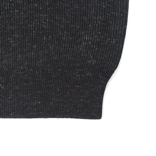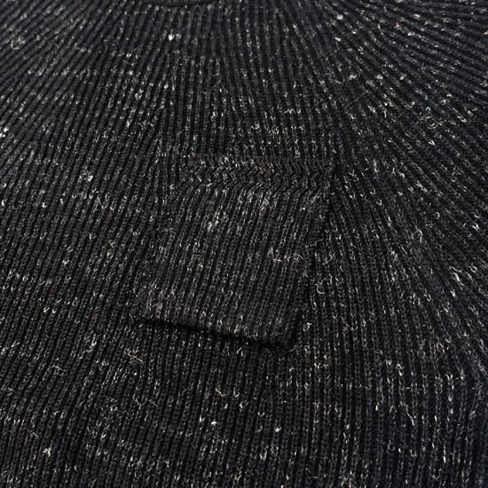 リネン混のケンピ糸にウールのストレート糸を片畦裏使いのプレーティングで7Gに編み上げた。プレーティングすることで片畦を編立た際により立体感がでる構造に仕上げた。