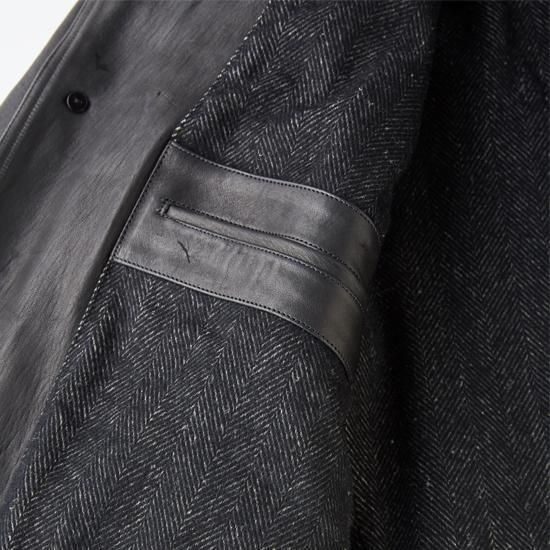 ミドルレングスの前見頃に配される鋭角に角度がついたウェルトポケットに職人技が光る玉縁ホール、