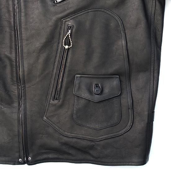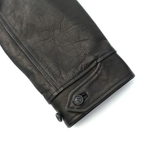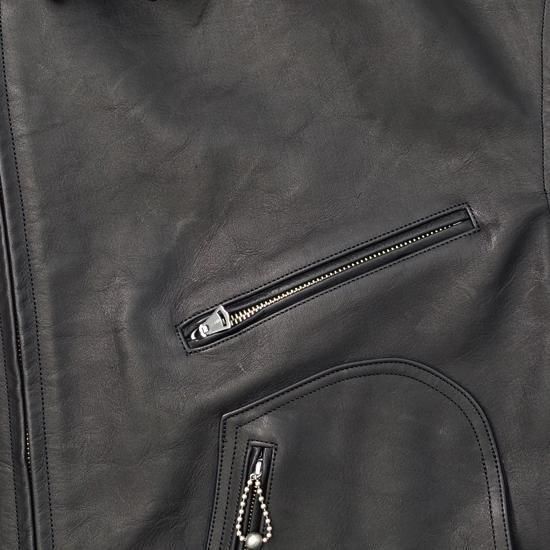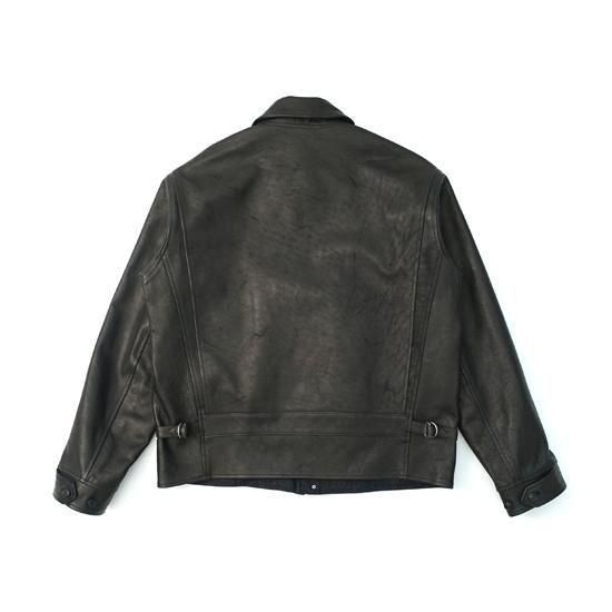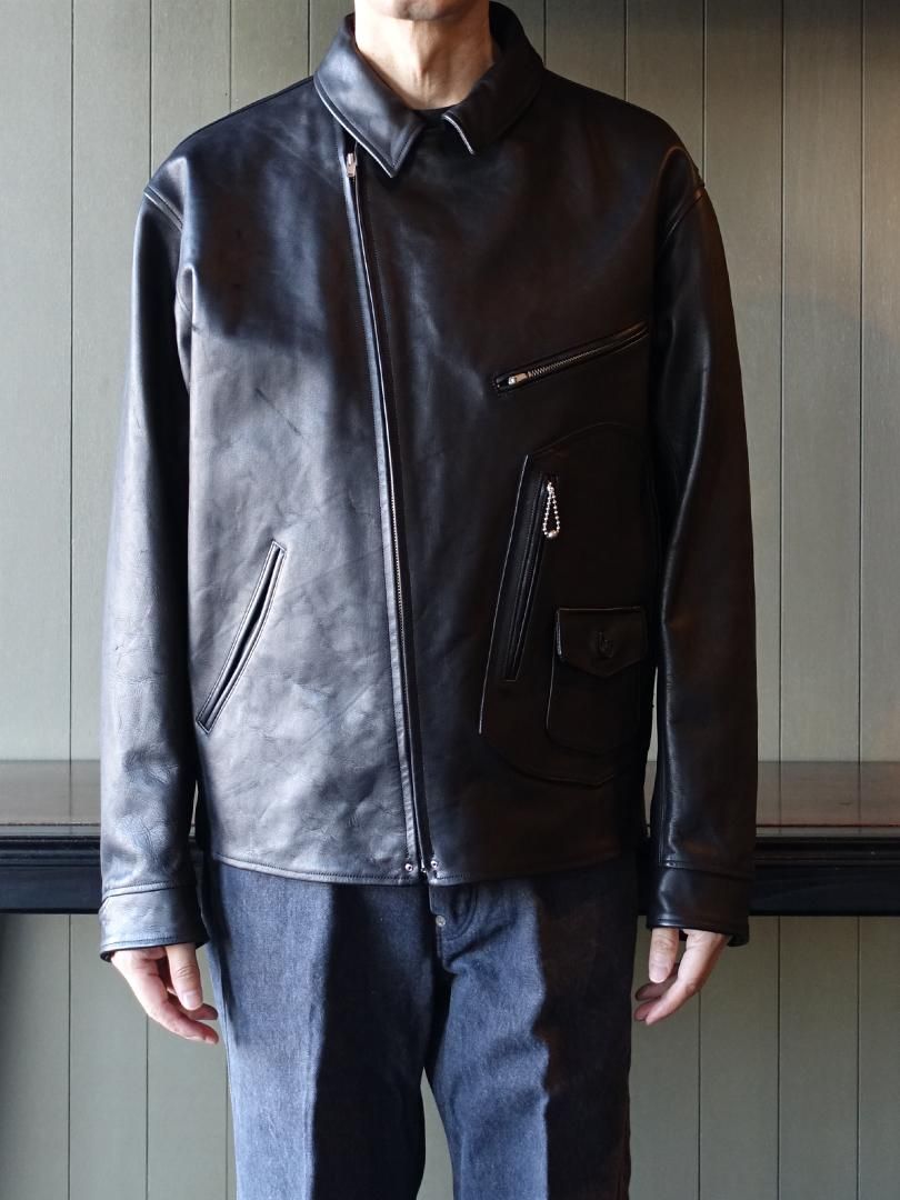 所謂ライダースジャケットとは違い、スポーツカフスにベルテッドバックスタイル、緩やかに湾曲したフロントラインなど当時のエレガントな空気感を放ちます。