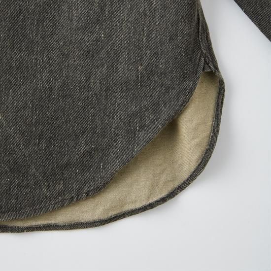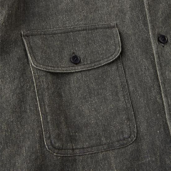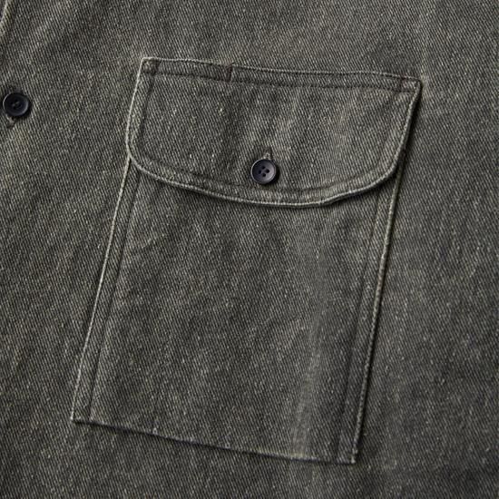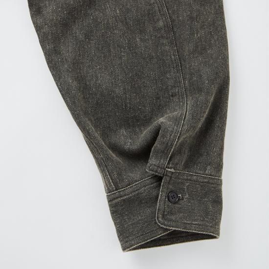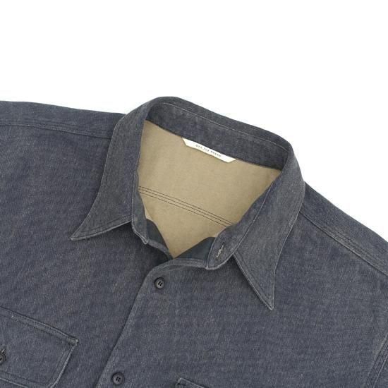 当時を彷彿させるロングポイントな襟先、肌に触れにくい仕様になったユニークなシガレットポケット、剣ボロのない簡素ながらも実用性に富んだ袖口の仕様、トリプルステッチやエルボーパッチなど目を引くディテールは敢えてそのままにデザインとして残している。