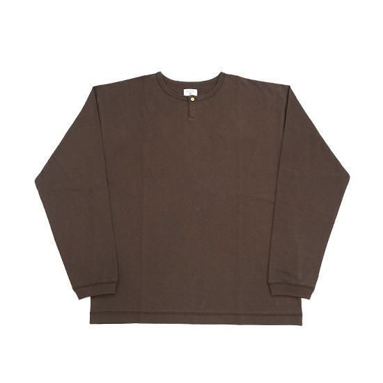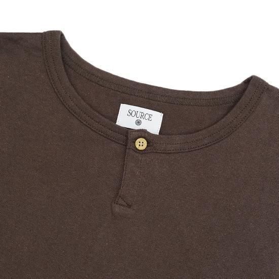 定番的でオールドなヘンリーTシャツのイメージをSOURCEでは壊したく、ネックが浅めの1つボタンという点にボタンのサイズも従来のものは13mm程度の物が多く見られますが、SOURCEの物は10mmの物を採用しました。