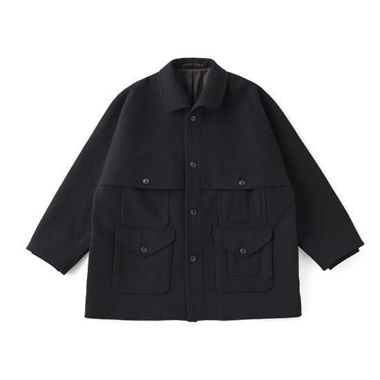 ブークレーヤーンを用いて織り上げたメルトンは不均一かつモダンな表情を持っており、都市生活者のためのコンフォタブルなフィッティングラインは、アーカイブピースの持つそれとは別物でとても品の良い佇まいを見せる。